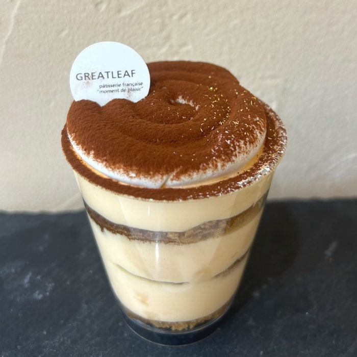 チョコレートムースとカラメルムースの二層。下にはアクセントのチョコクランチ。期間限定
